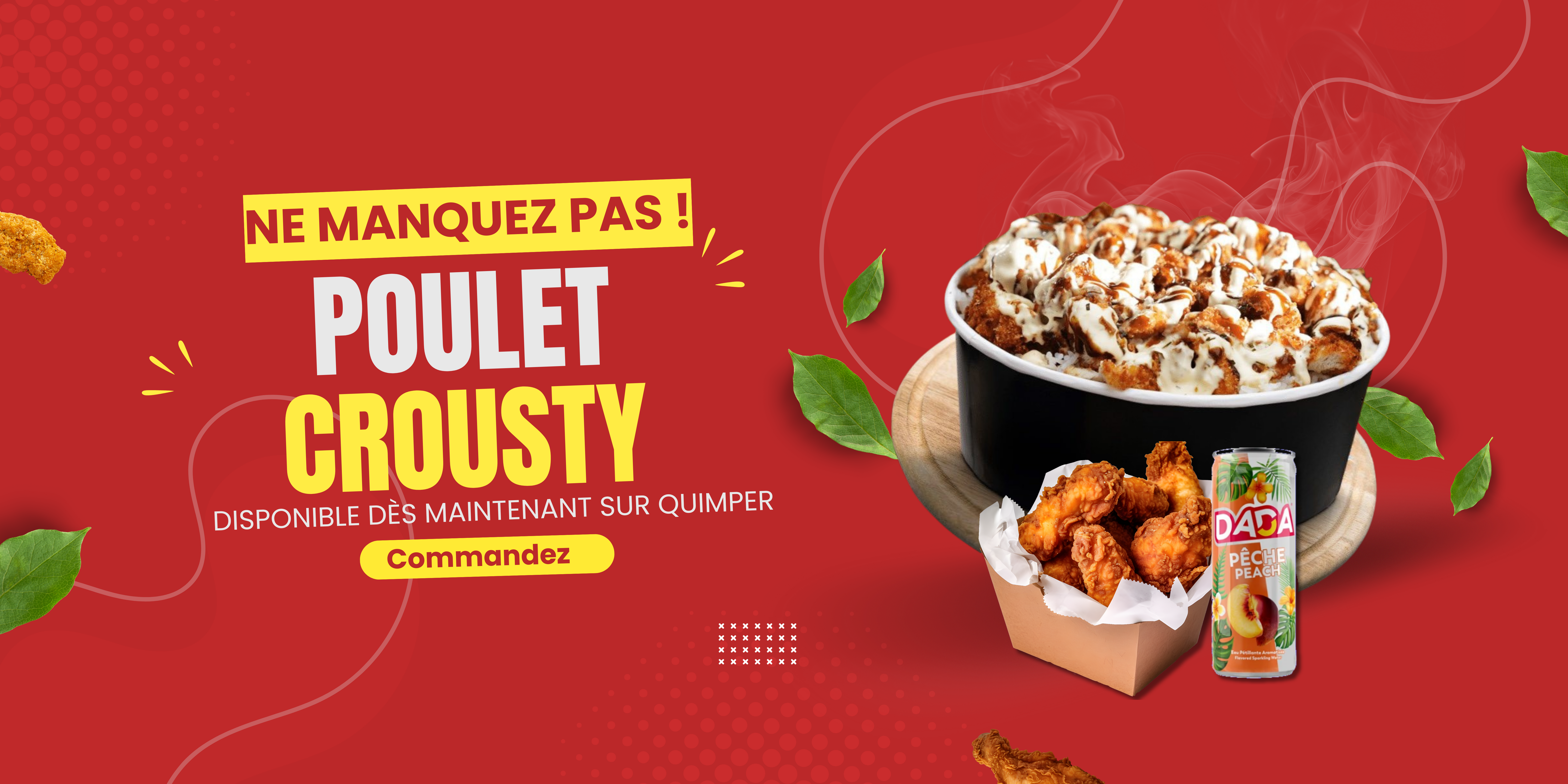 Craquez pour le Poulet Crousty : du poulet doré et croustillant, un riz savoureux, des oignons frits ultra croquants et une sauce secrète qui transforme chaque bouchée en explosion de saveurs ! 🔥...